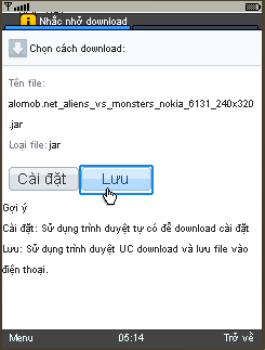 (*) Lưu ý quan trọng: Khi download bằng UC Browser các tệp tin .jar mặc định được lưu thành _jar lúc này nó là tệp tin chưa xác định và bị (?). Các bạn chỉ cần đổi tên từ _jar thành .jar là ok. Nếu ngay sau khi đổi tên thành .jar máy báo "Ứng dụng sai" hoặc "Ứng dụng không hợp lệ" nghĩa là điện thoại của bạn không được hỗ trợ