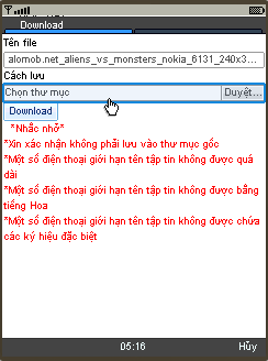 Tại đây các bạn có thể chọn ổ lưu file là E: (thẻ nhớ) hoặc C: (bộ nhớ máy), nên lưu vào E: cho nhẹ bộ nhớ máy. Sau khi chọn dc thư mục xong nhấn "Menu" => "Chọn" Rùi nhấn vào nút "Download" để tiến hành download