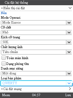 Sau khi quá trình cập nhật dữ liệu hoàn tất => các bạn chọn "Menu" => một bảng gợi ý hiện ra thông báo rằng bàn phím mặc định được xác định là QWERTY Nếu bàn phím của bạn không phải là QWERTY các bạn cần cài đặt lại để tiện sử dụng. Tiếp tục nhấn "Menu" => "Cài đặt hệ thống"